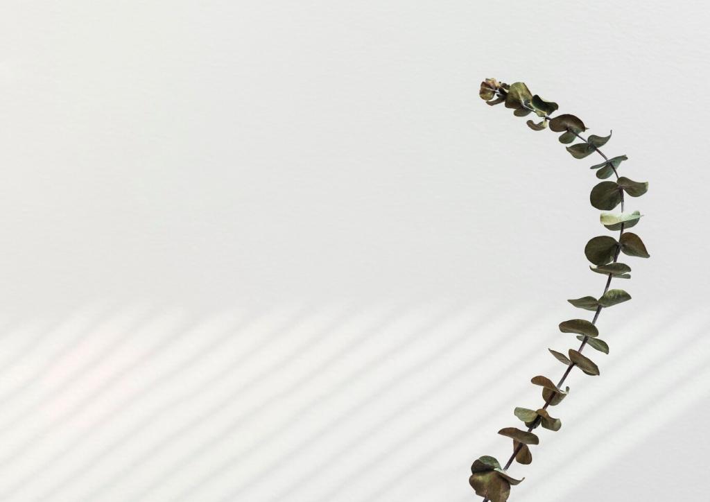 Begrenze Deko auf Lieblingsstücke und lasse Flächen bewusst frei. Ordne Kabel, bündle Fernbedienungen und schaffe einen festen Platz für Bücher. So entsteht eine Atmosphäre, die dich sofort herunterfährt.